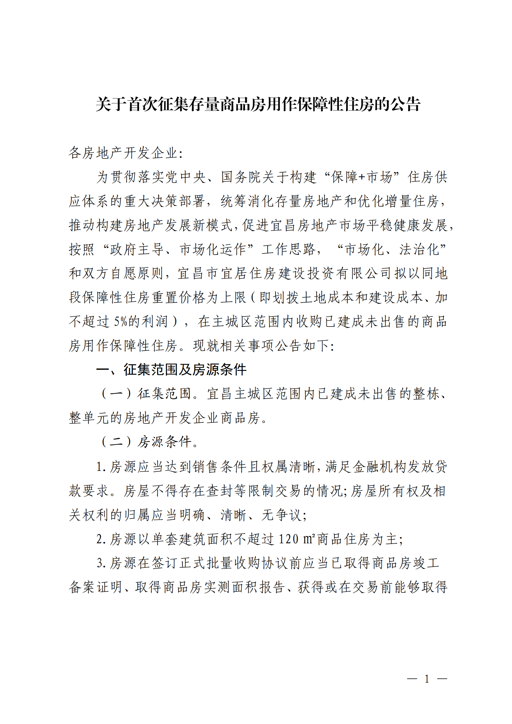 关于首次征集存量商品房用作保障性住房的公告