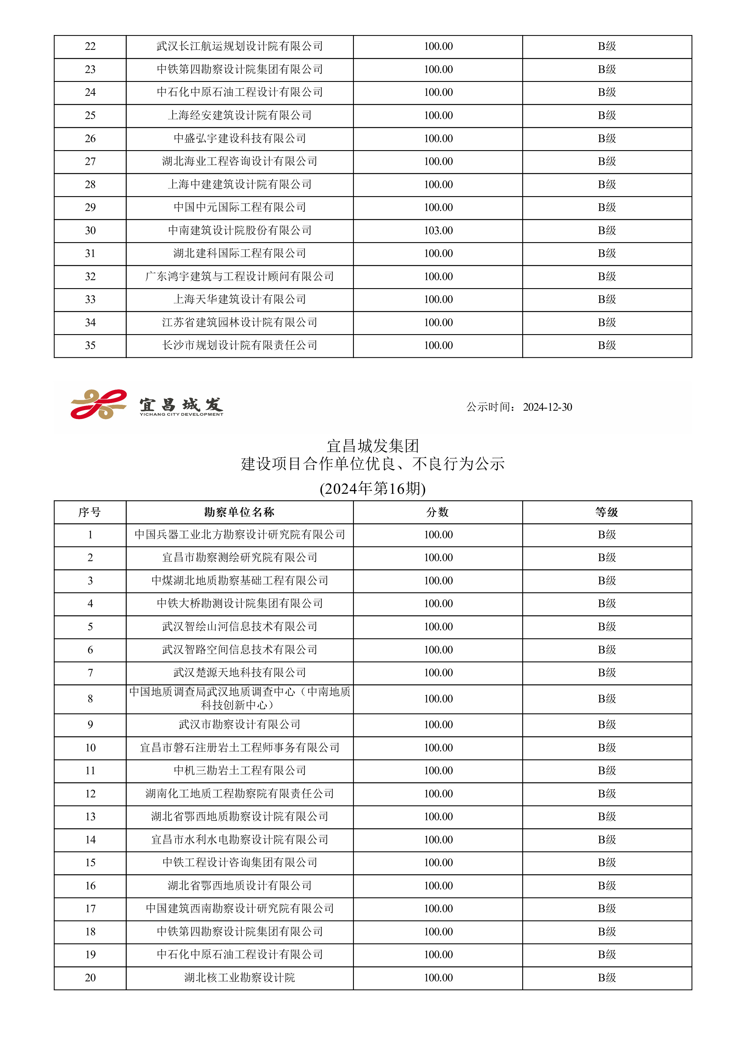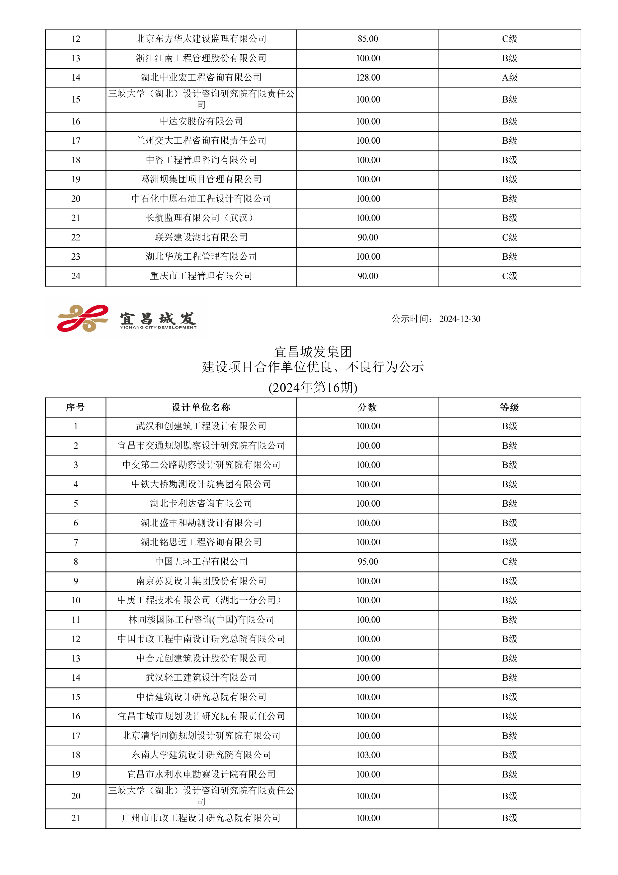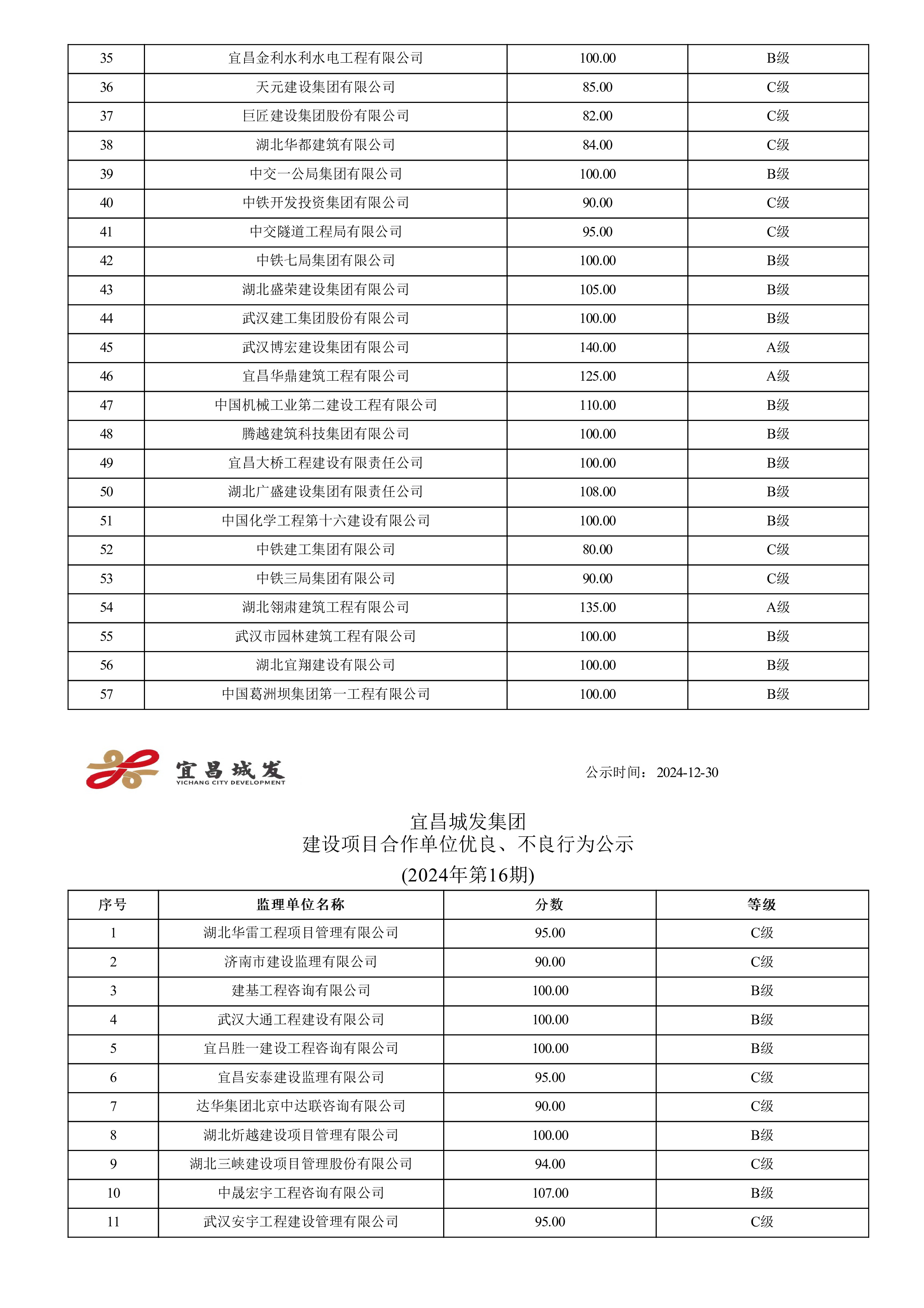 宜昌城发集团建设项目合作单位优良、不良行为公示 (2024年第十六期)