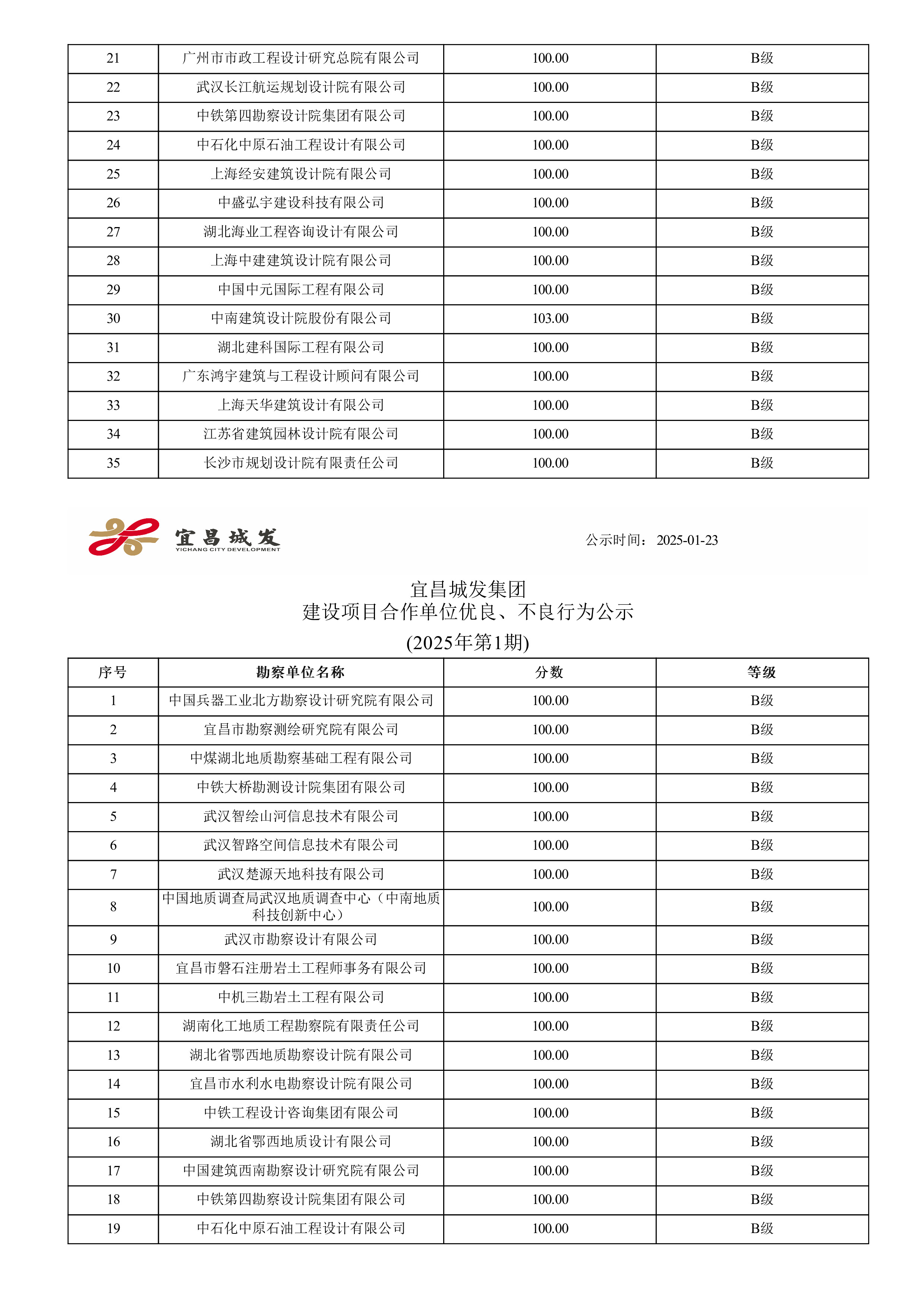 宜昌城发集团建设项目合作单位优良、不良行为公示 (2025年第十七期)