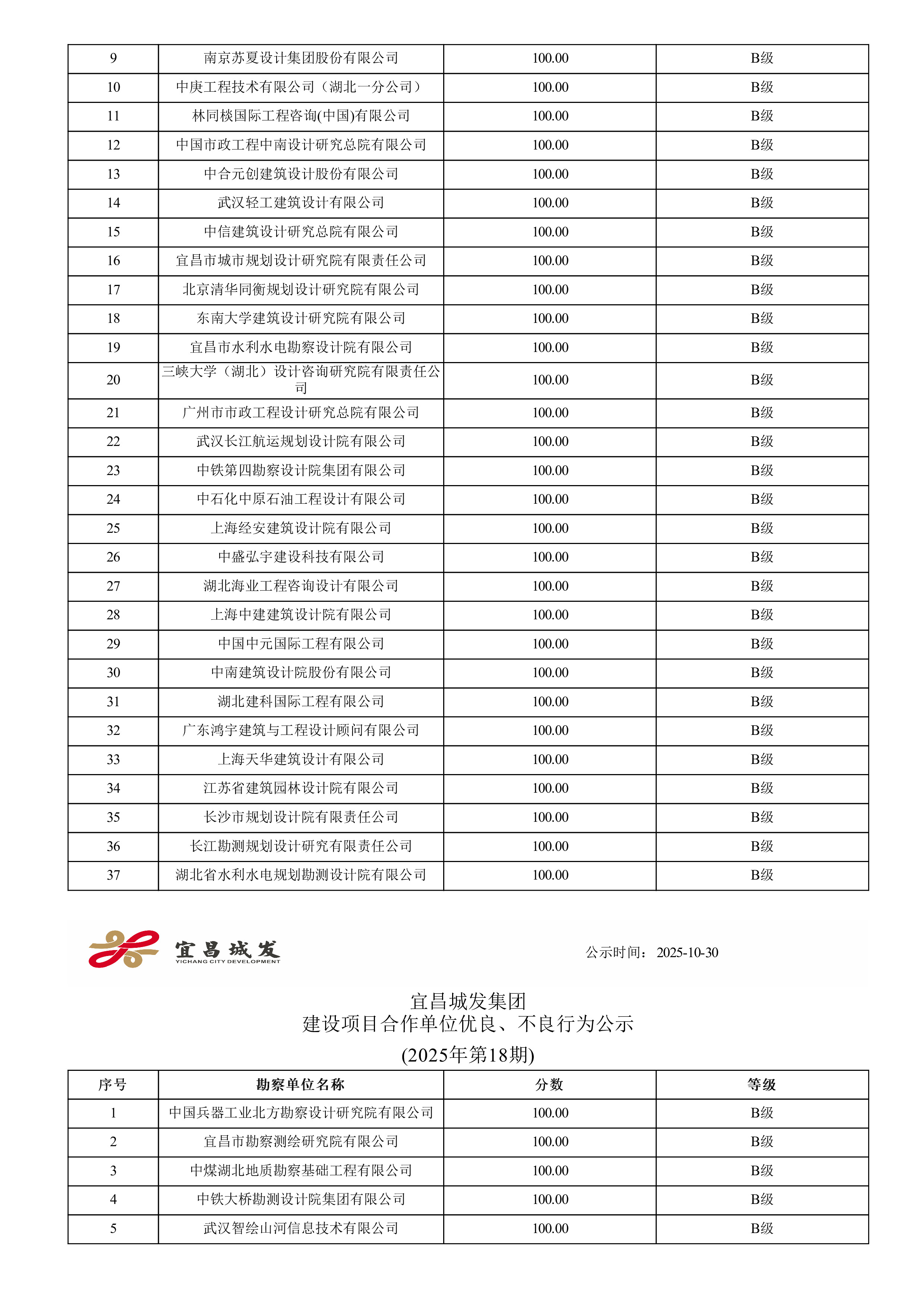 宜昌城发集团建设项目合作单位优良、不良行为公示 (2025年第三十三期)