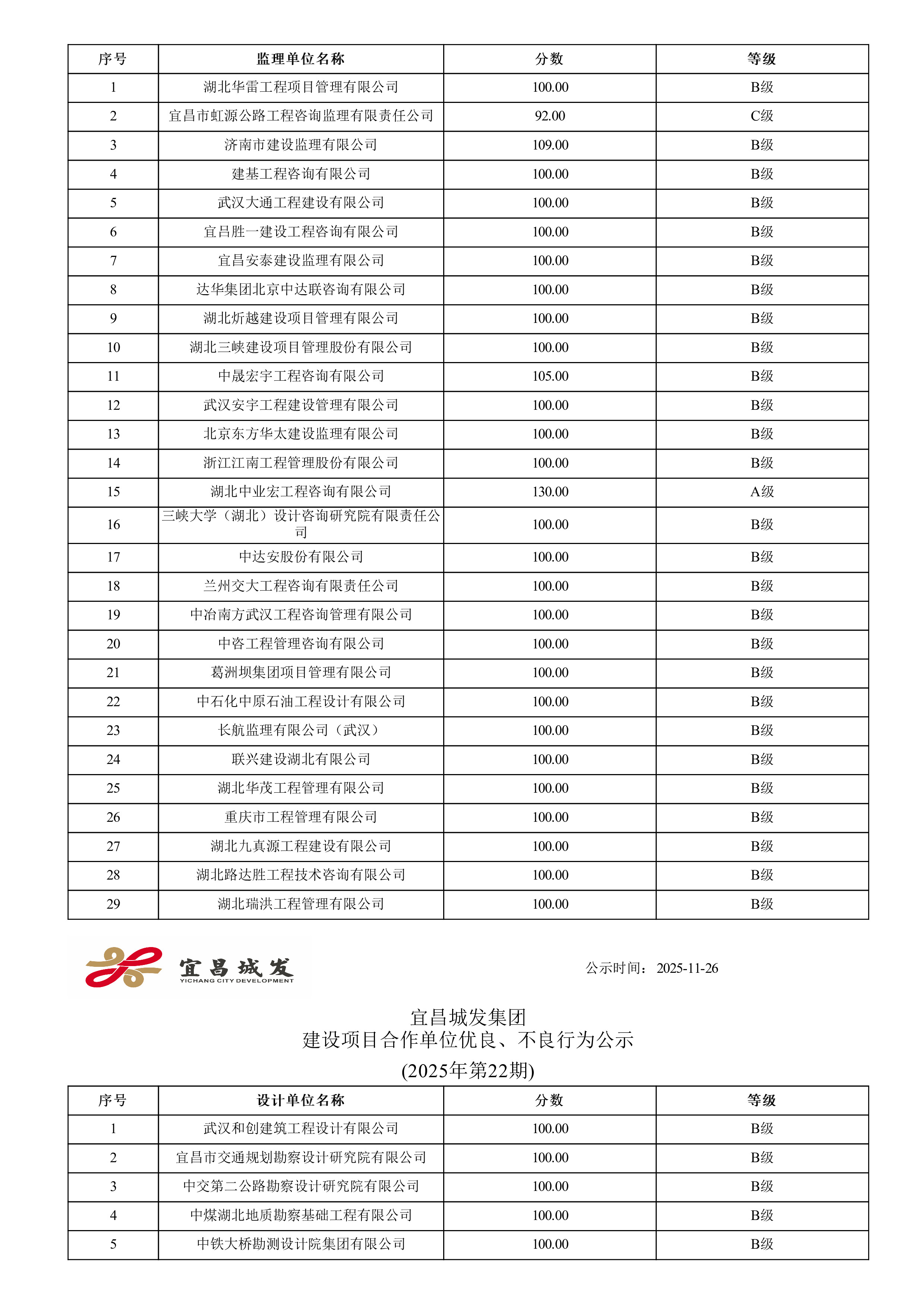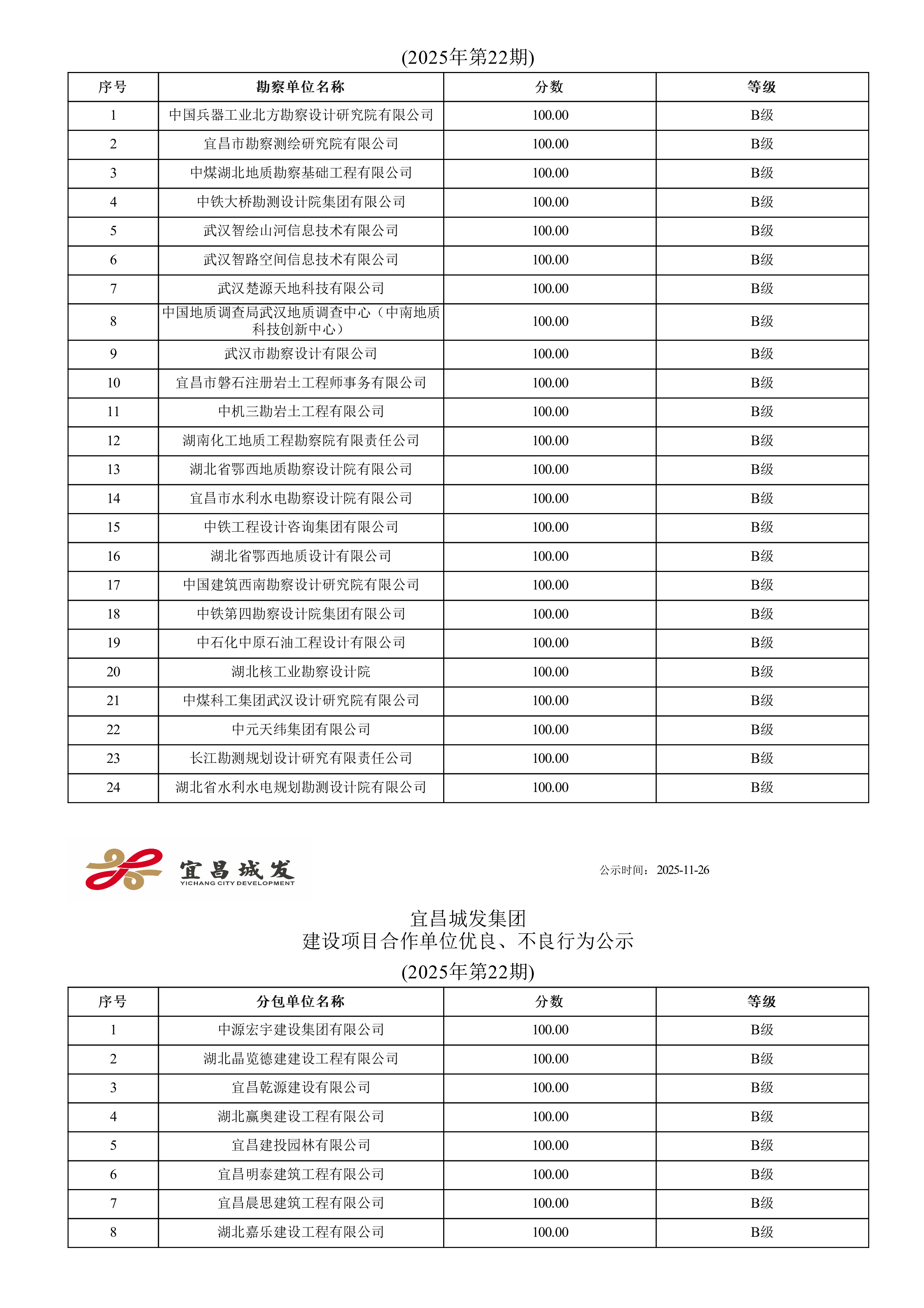 宜昌城发集团建设项目合作单位优良、不良行为公示 (2025年第三十八期)