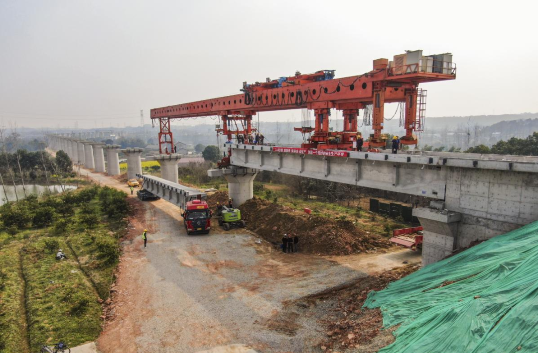 3月13日,宜昌田家河铁路专用线暨邦普配套铁路项目首片T梁架设成功,桥梁工程进入上部结构施工阶段。