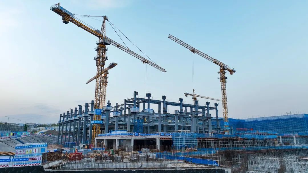 精雕细琢方出精品。项目总建筑面积约8.79万平方米,主体采用钢框架+钢桁架结构,总用钢量约7000吨。工程会议中心钢屋盖主体造型呈双曲造型,屋盖最大高差达19.23米,最大柱间跨度达36米,屋盖下方设有观众席和舞台吊挂结构、节点多样复杂,含有桁架相贯焊等复杂节点,造型新颖独特,充分彰显了“荆风楚韵 层楼叠影”的设计理念。