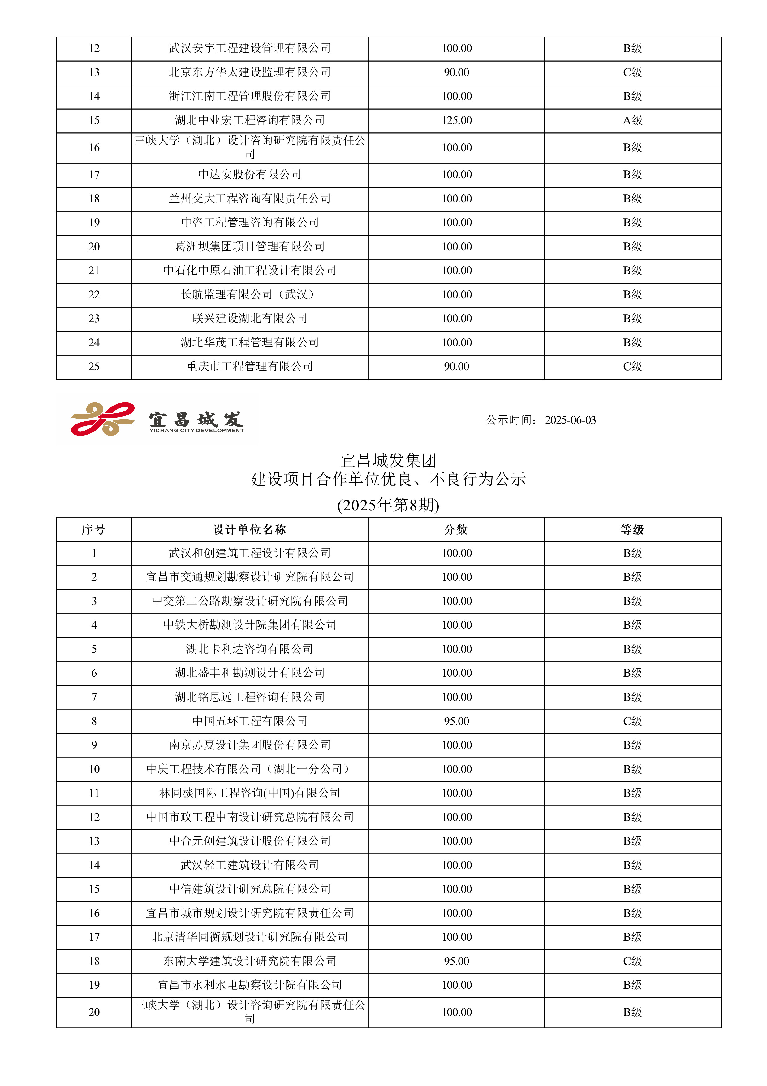 宜昌城发集团建设项目合作单位优良、不良行为公示 (2025年第二十五期)