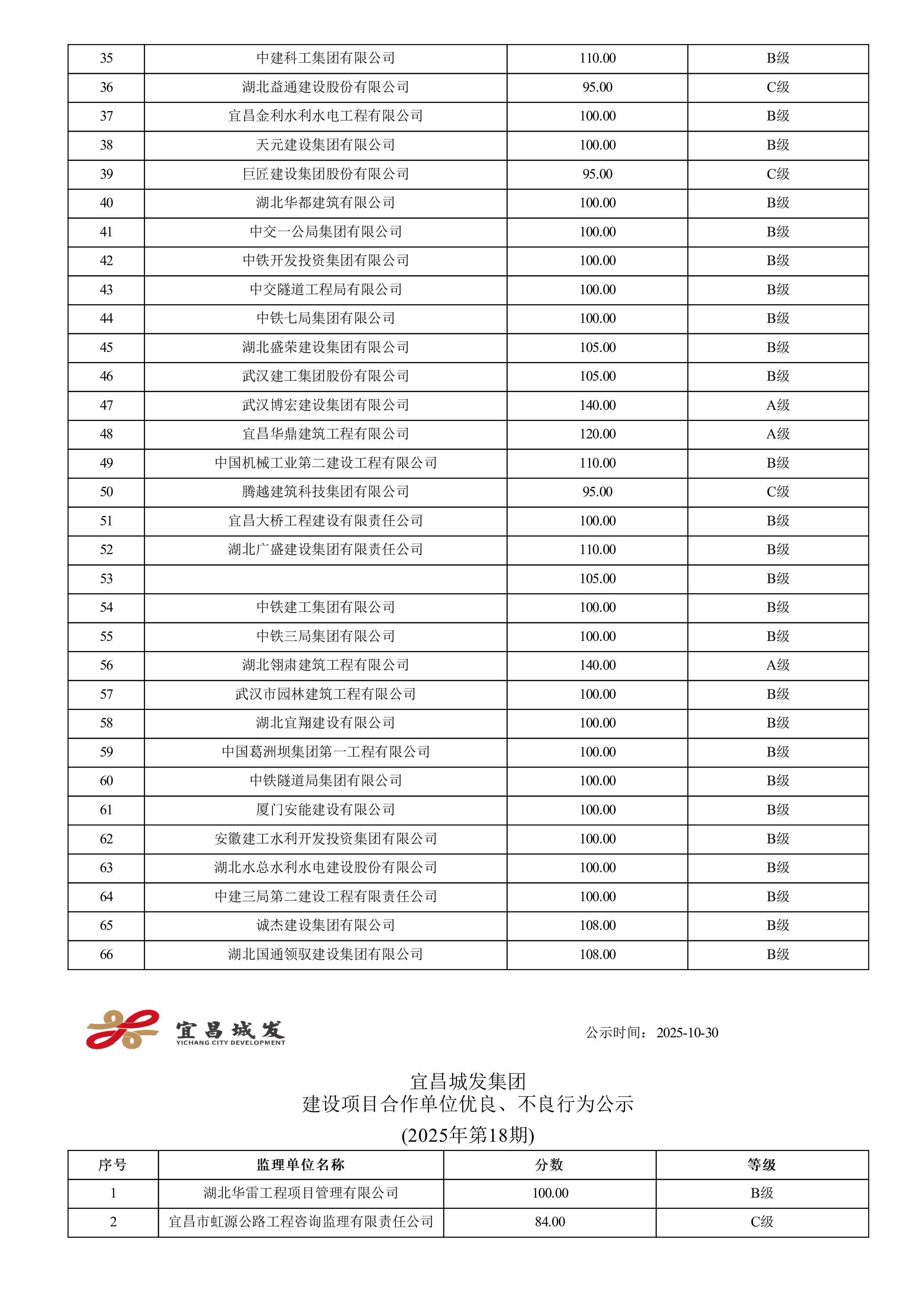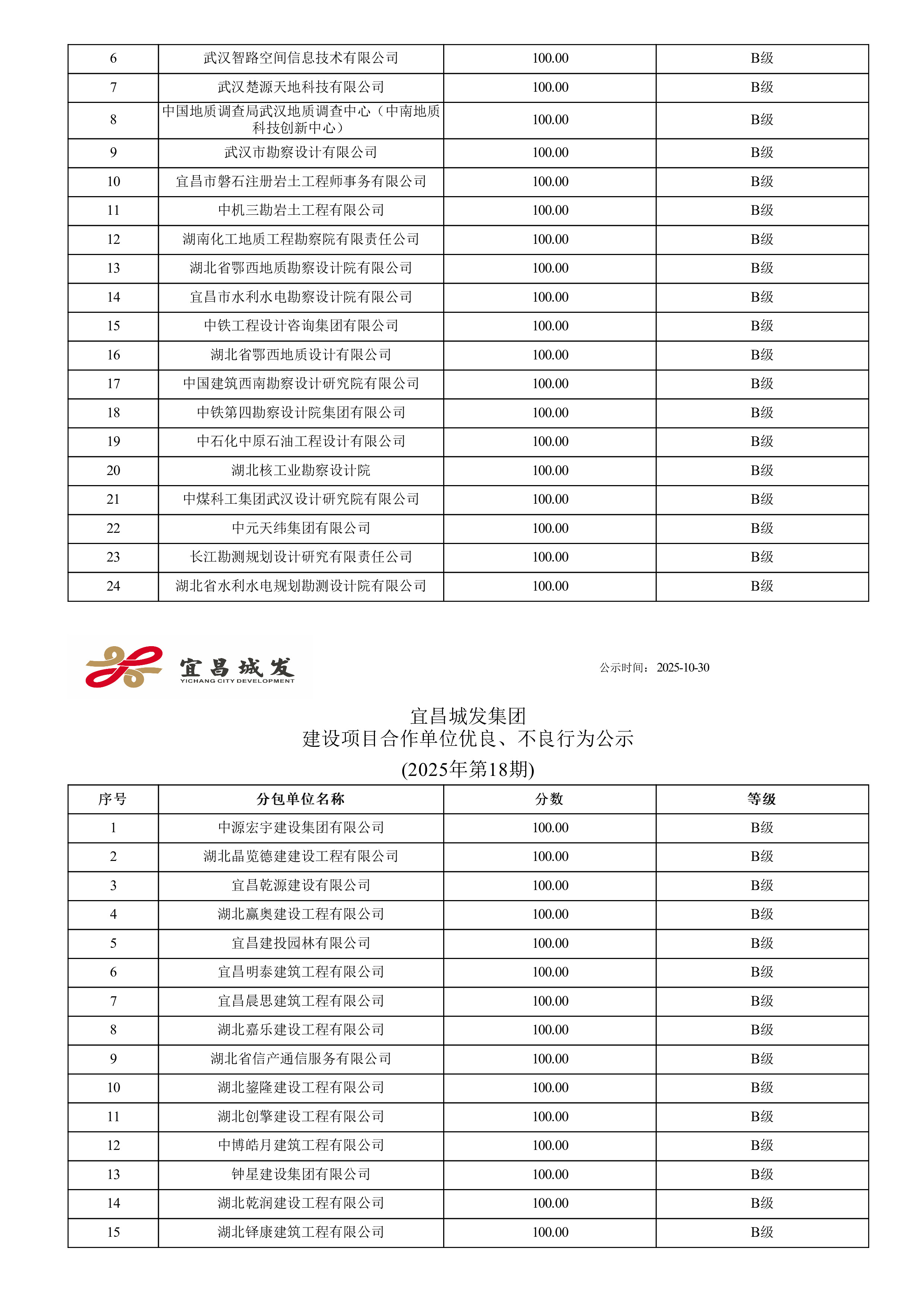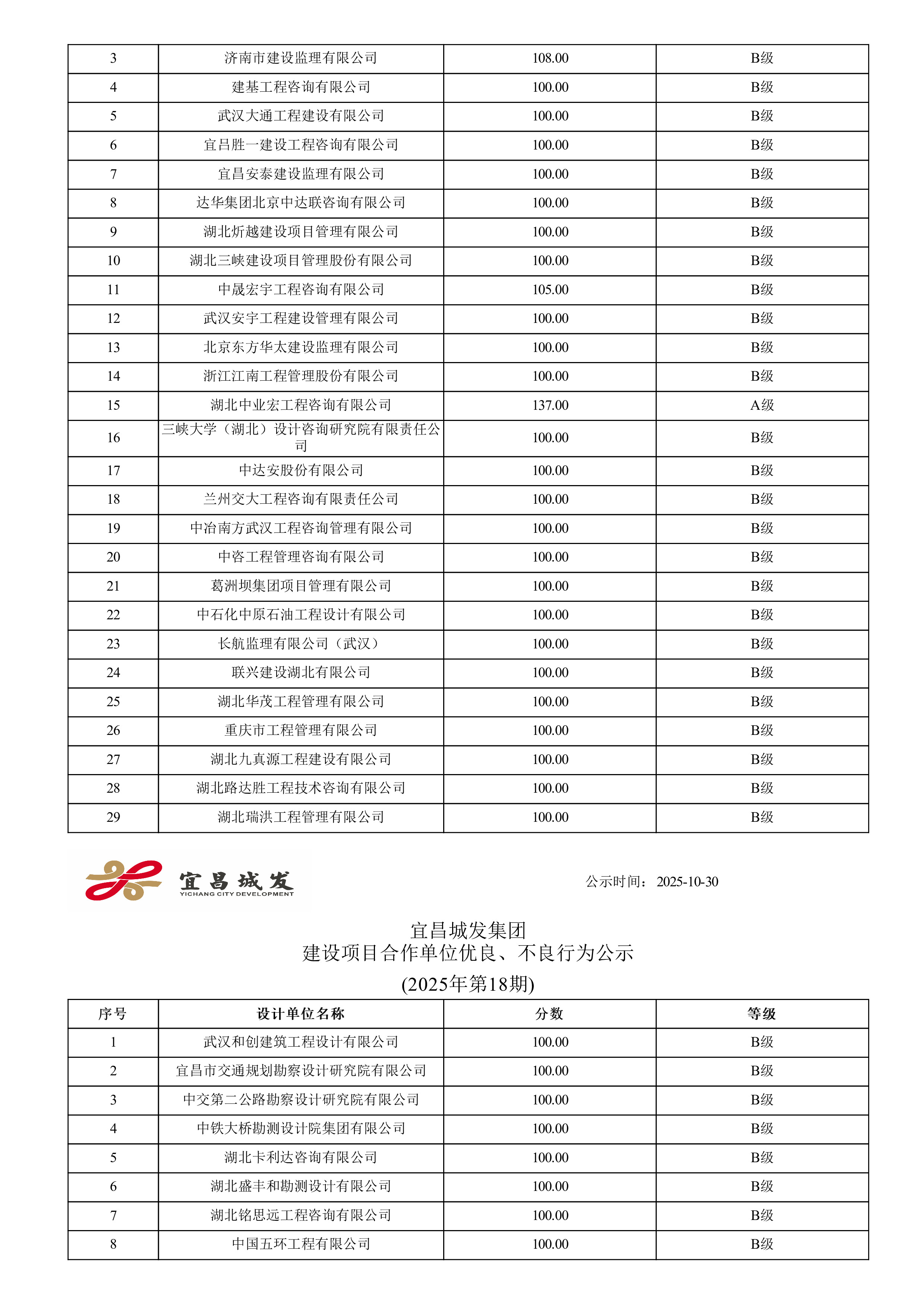 宜昌城发集团建设项目合作单位优良、不良行为公示 (2025年第三十三期)