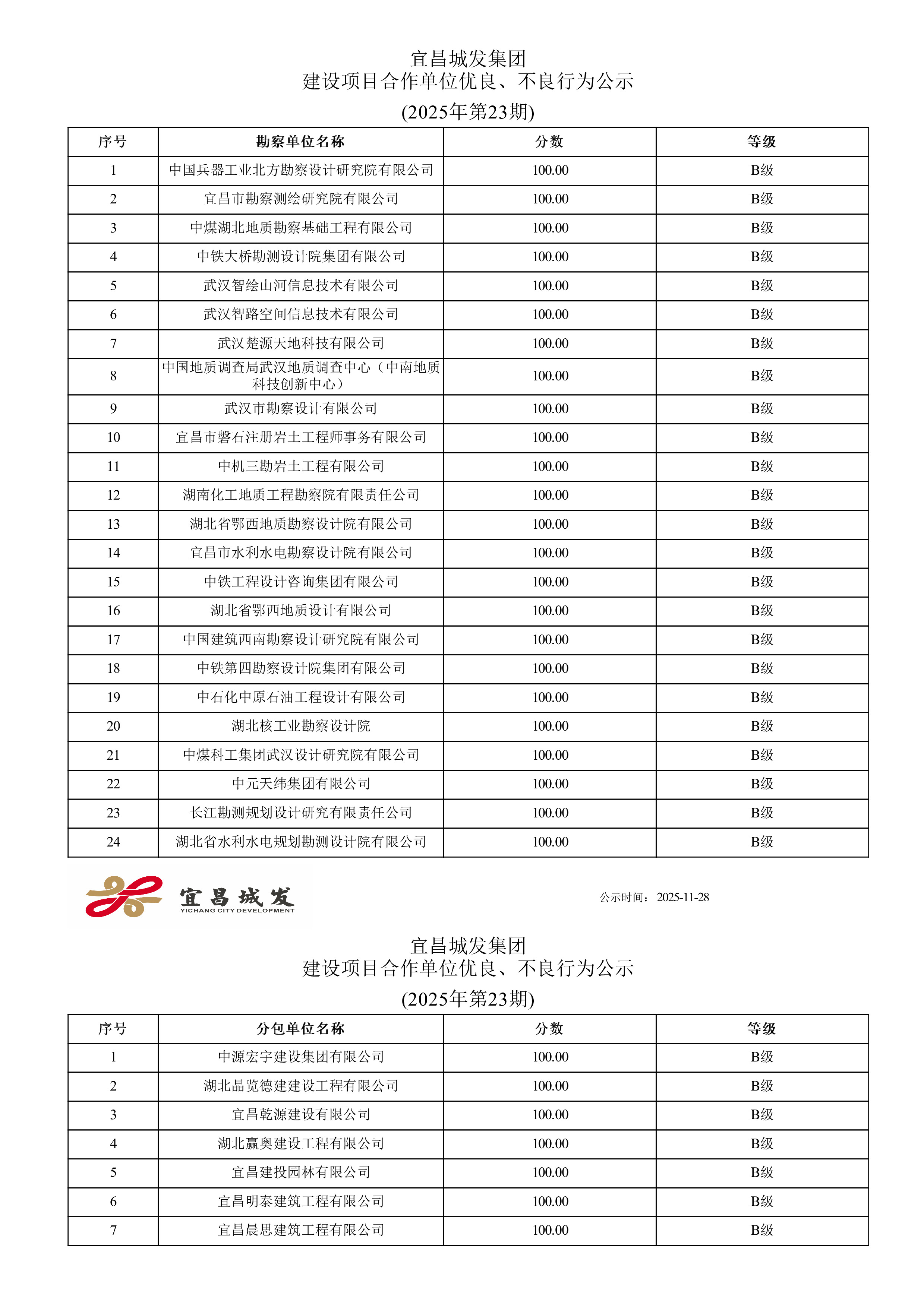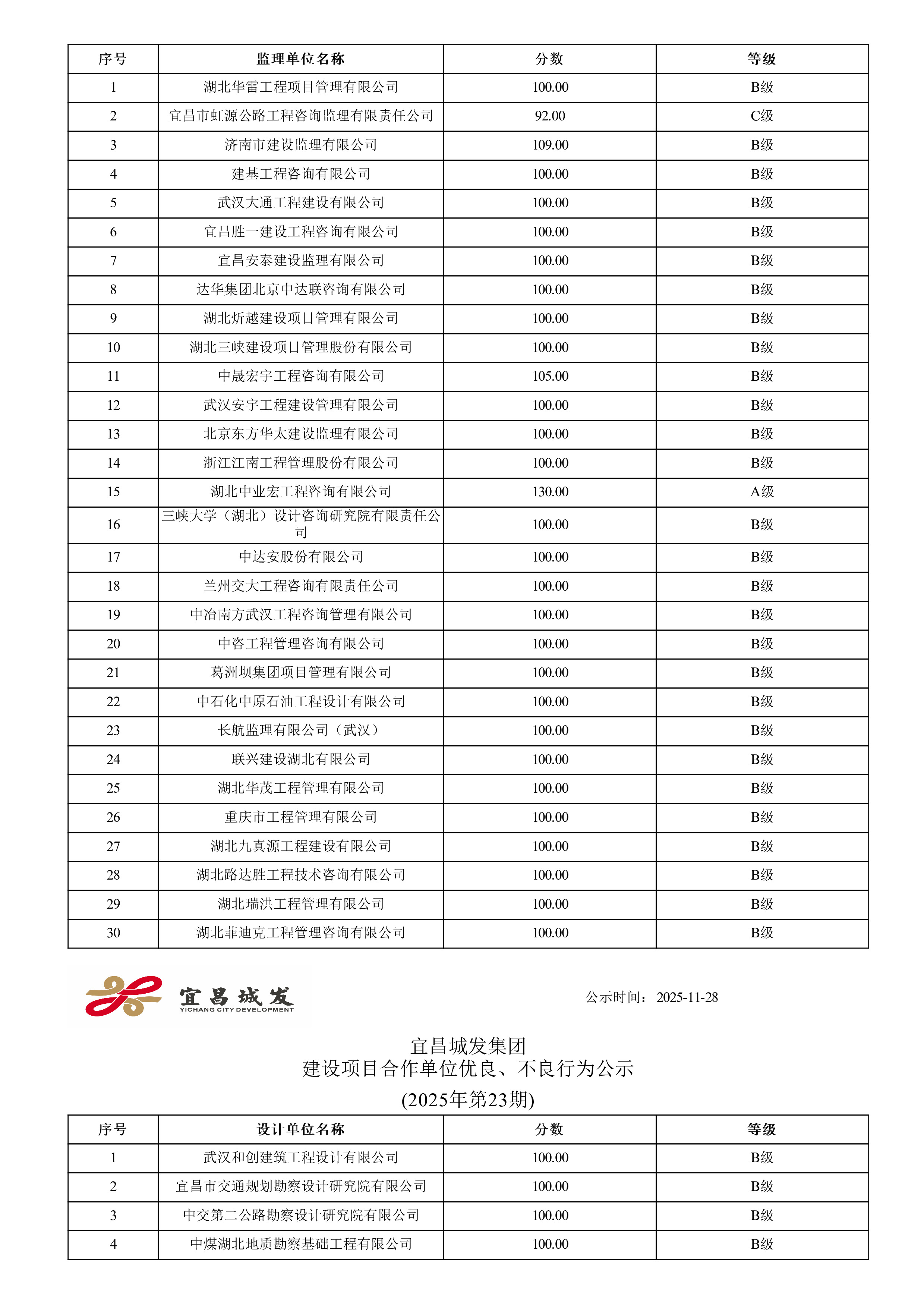 宜昌城发集团建设项目合作单位优良、不良行为公示 (2025年第三十八期)