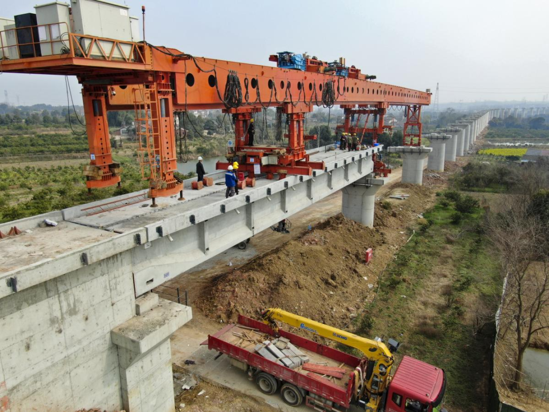 3月13日,宜昌田家河铁路专用线暨邦普配套铁路项目首片T梁架设成功,桥梁工程进入上部结构施工阶段。