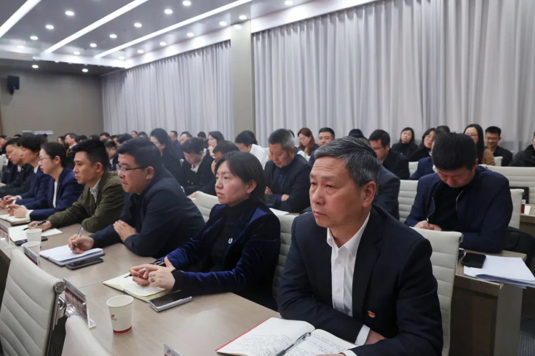 集团领导刘仁、陈剑屏、陈启红、李江涛、刘政亚及市管干部、总助总监、董事会秘书、部室(中心)负责人,专业化(直管)子公司班子成员等参加会议。