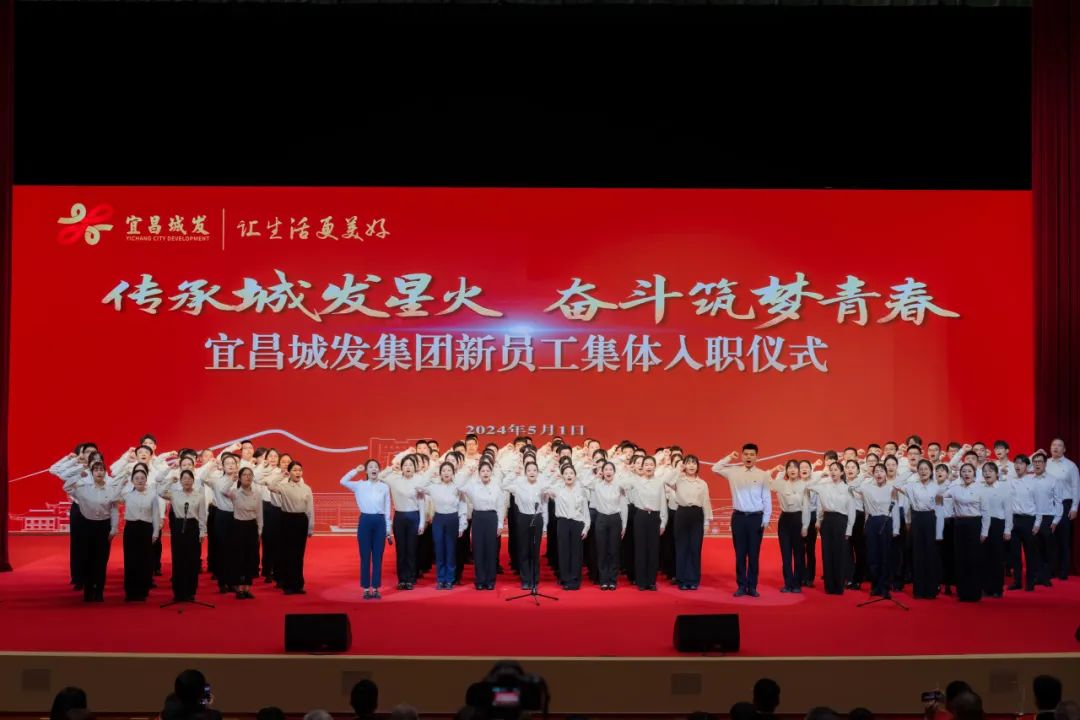5月1日,宜昌城发集团“十大杰出青年”表彰暨新员工集体入职仪式在三峡宾馆举行,100多名有理想、敢担当、能吃苦、肯奋斗的城发新青年和新入职员工代表,以蓬勃之力、奋进之姿,许下了为“再造千亿新城发、挺进中国500强”战略发展目标,贡献青春力量的志向与誓言。